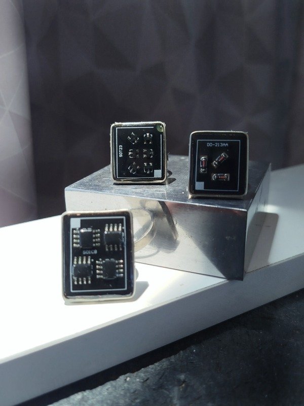 Anillo con plaqueta negra y componentes minis color cobre 🖤